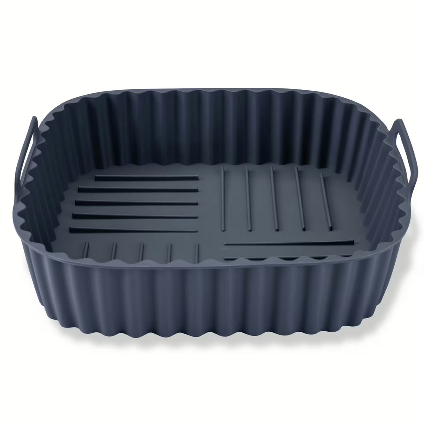 Hol dir jetzt die praktische Airfryer Silikonform von Fackelmann und bring noch mehr Vielfalt in deine Heißluftfritteuse. Mit ihrem quadratischen Format und den handlichen Maßen von 19 x 19 x 5 cm (ohne Griffe) passt sie ideal in viele Geräte und bietet ausreichend Platz für herzhafte und süße Leckereien. Der gerillte Boden sorgt dafür, dass überschüssige Fette und Säfte abfließen – für knusprige Ergebnisse ganz ohne Ankleben. Hergestellt aus hochwertigem, aschgrauem Silikon, ist die Silikonform für Airfryer hitzebeständig bis +230 °C und besonders vielseitig einsetzbar: ob klassisch im Airfryer, in der Mikrowelle oder im Backofen. Zudem ist sie fruchtsäureresistent, geruchs- und geschmacksneutral und kann nach dem Gebrauch einfach in der Spülmaschine gereinigt werden. Wiederverwendbar, stilvoll und pflegeleicht – entdecke jetzt deine neue Silikonform für die Heißluftfritteuse und mach dir das tägliche Kochen damit noch einfacher!